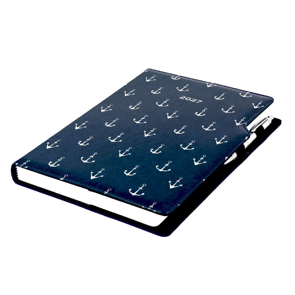 Diár DESIGN denný A4 2027 - modrá - Námorník - kotvy