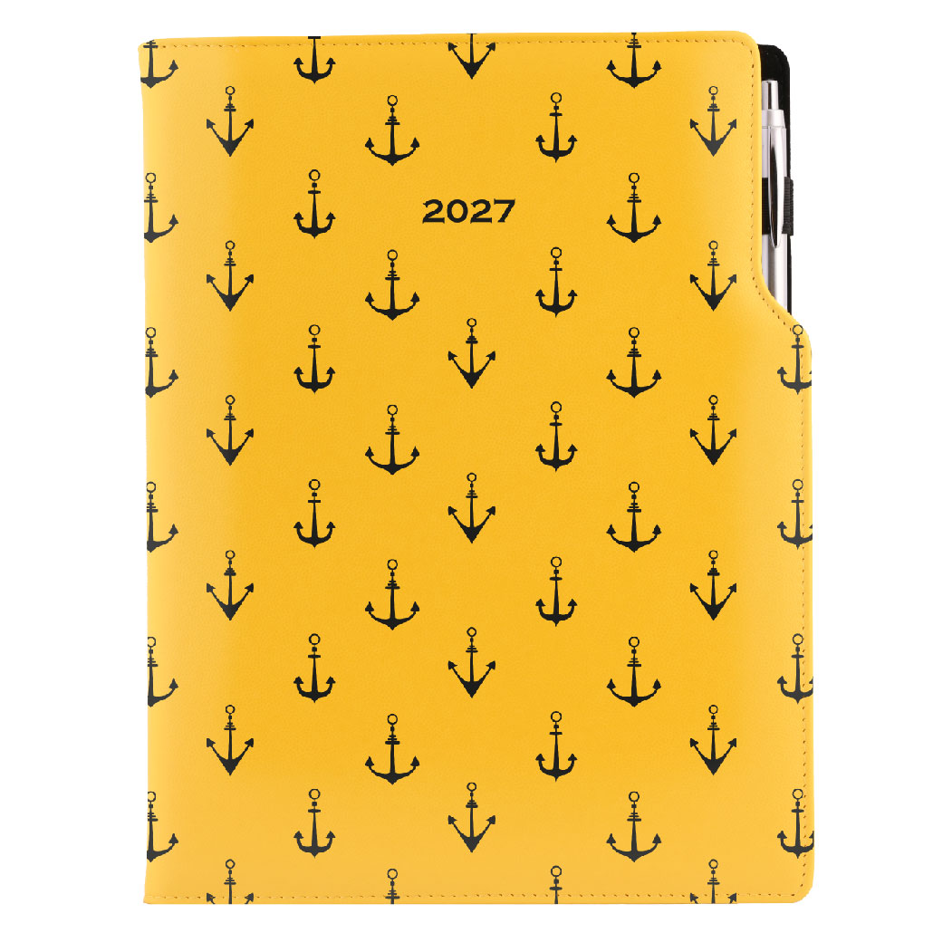 Diár DESIGN denný A4 2027 poľský - žltá - námorník - kotvy