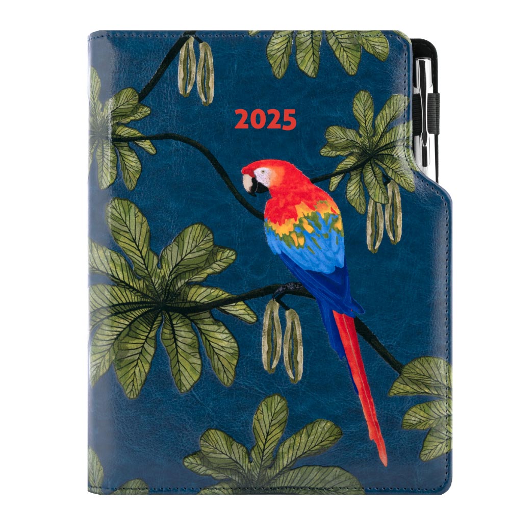 Diár DESIGN denný A5 2025 poľský - modrá - papagáj