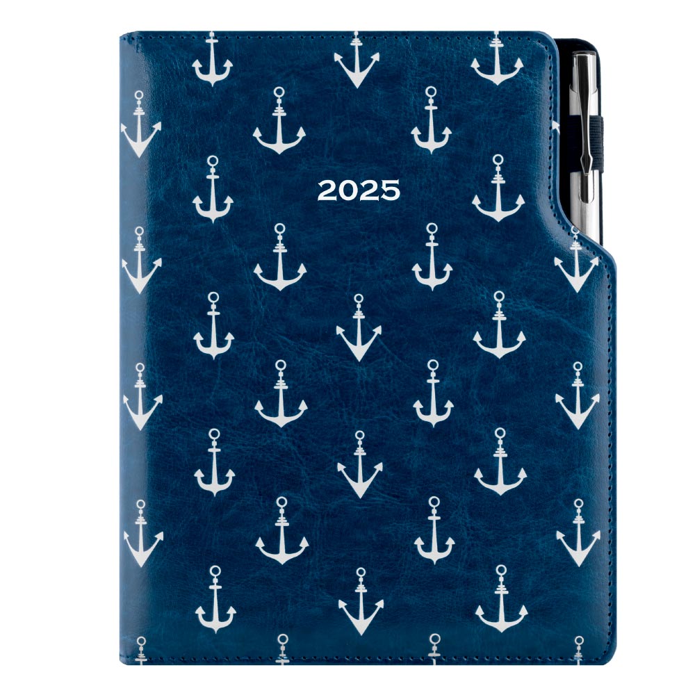 Diár DESIGN denný A5 2025 poľský - modrý - námorník - kotvy