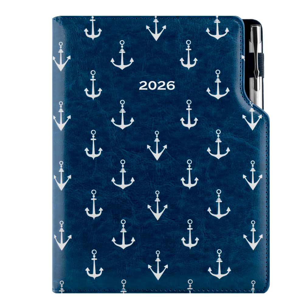 Diár DESIGN denný A5 2026 poľský - modrý - námorník - kotvy