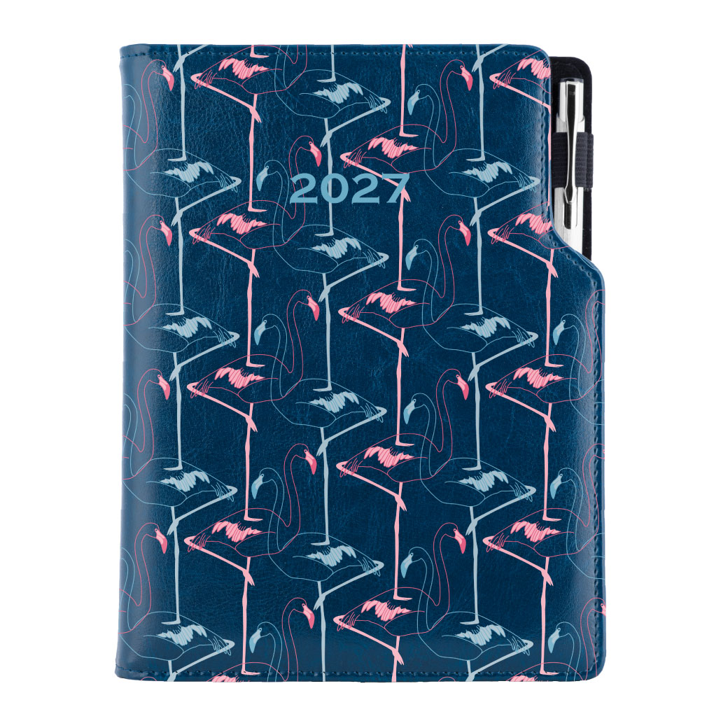 Diár DESIGN denný A5 2027 český - modrá - Flamingo
