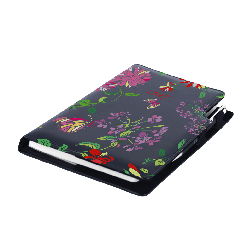 Diár DESIGN denný A5 2027 poľský - čierny - kvety