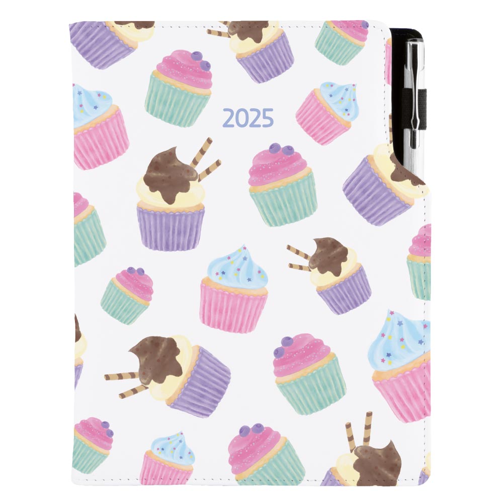 Diár obsahuje: okrúhle odtrhávcie rožky, bielu záložku a pero