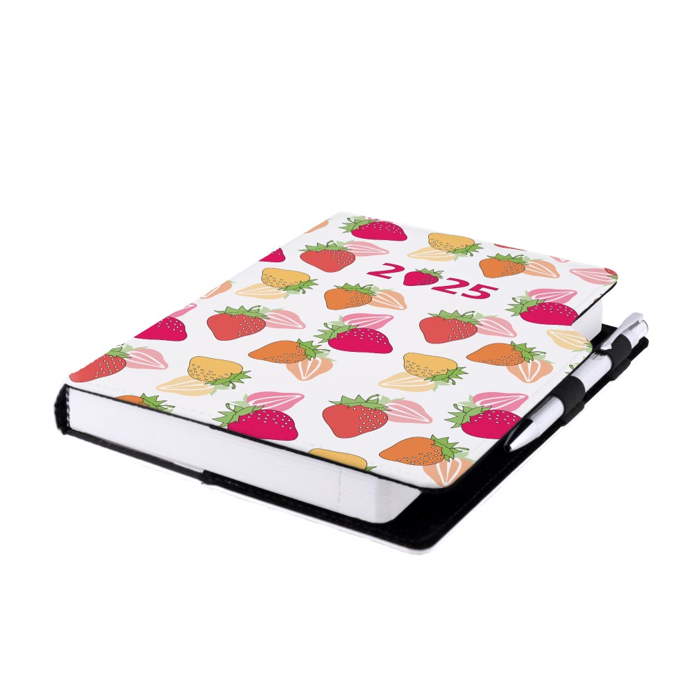 Diár obsahuje: okrúhle odtrhávcie rožky, bielu záložku a pero