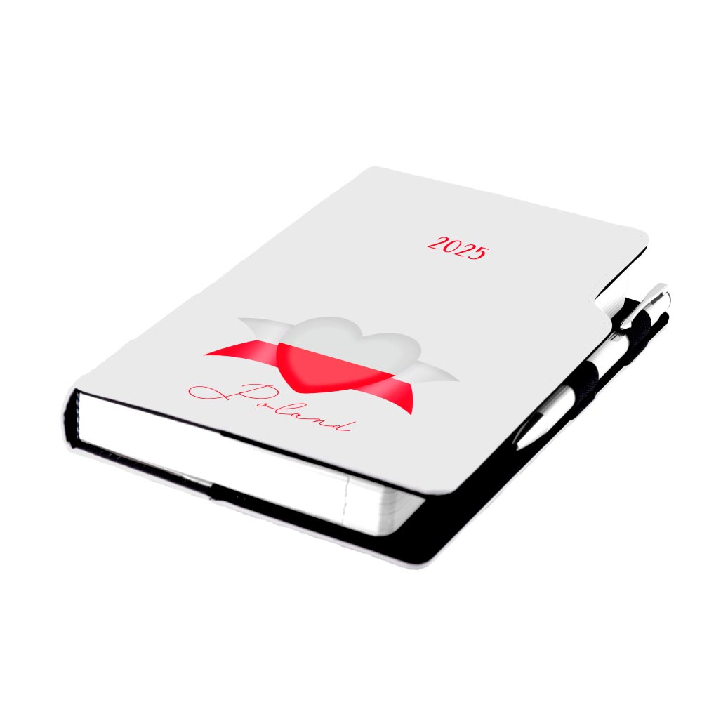 Diár DESIGN denný B6 2025 poľský - biela - Poľsko - vlajka