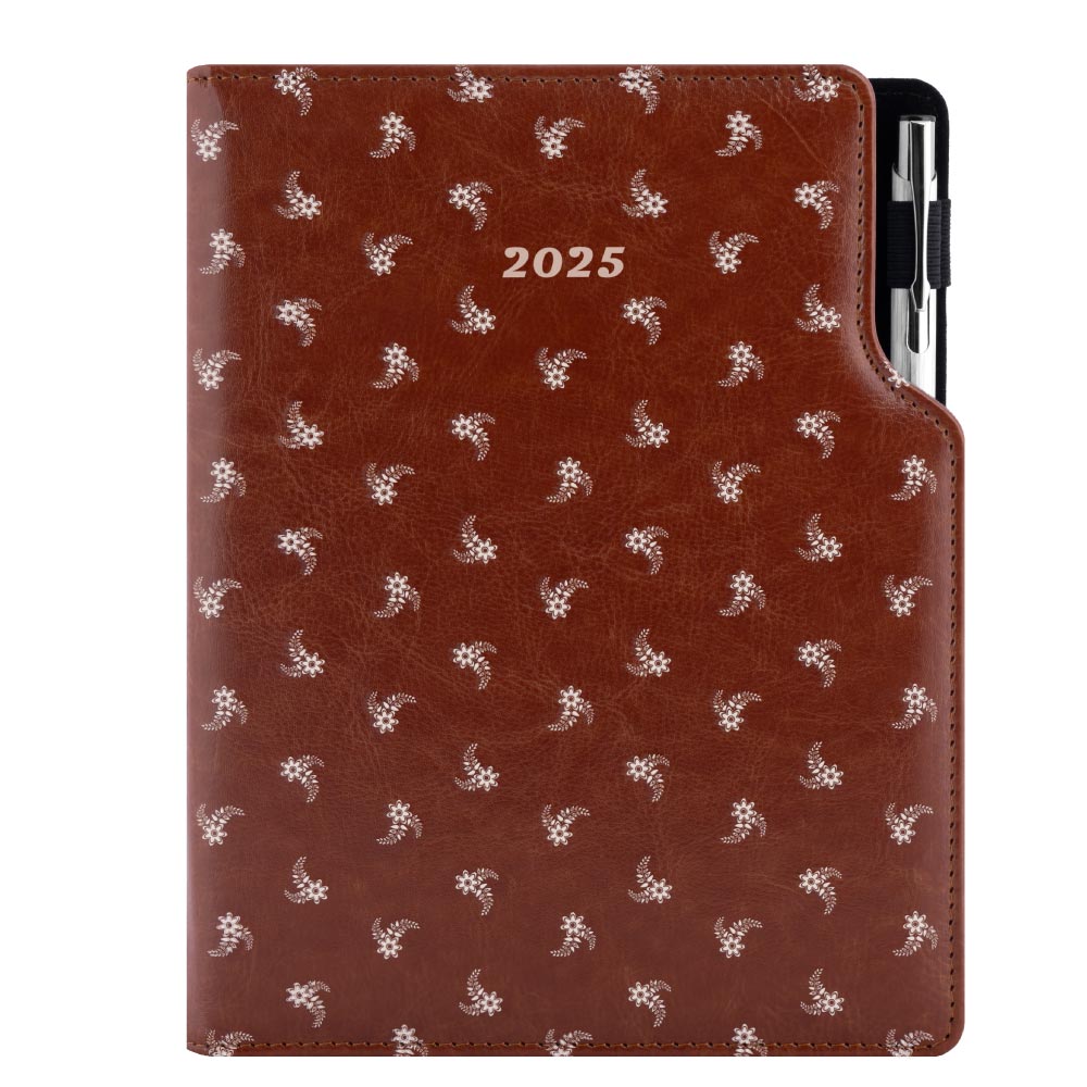 Diár DESIGN denný B6 2025 poľský - hnedá - biely kvet