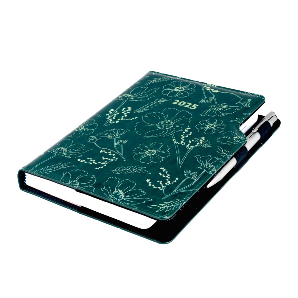 Diár DESIGN denný B6 2025 poľský - zelená - kvety