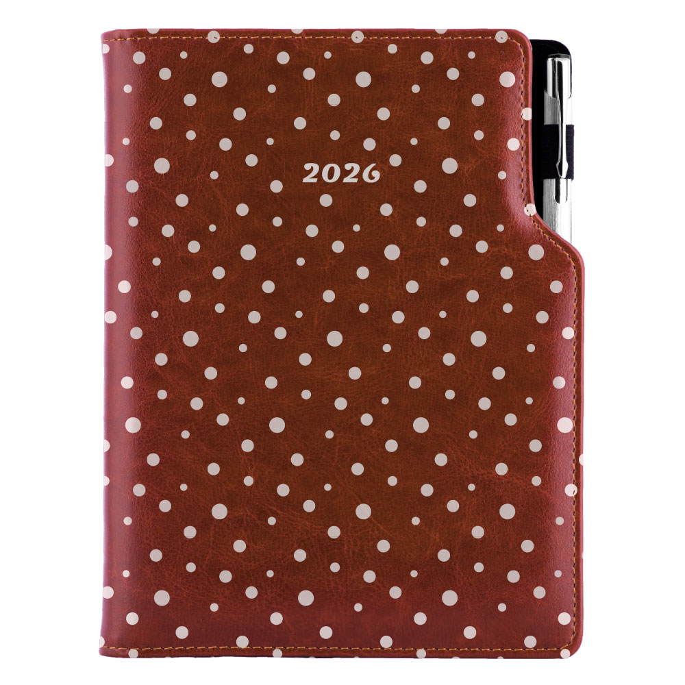 Diár DESIGN denný B6 2026 - hnedá - Bodky