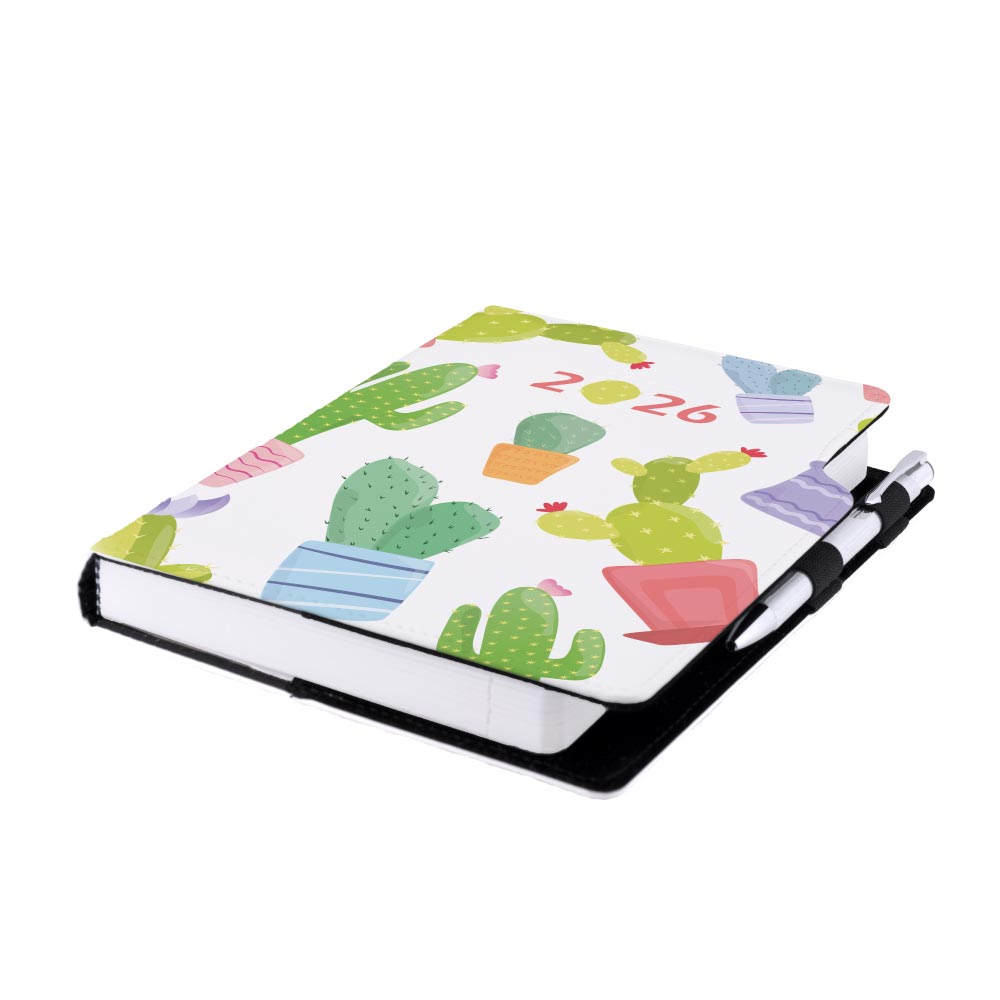 Diár obsahuje: okrúhle odtrhávcie rožky, bielu záložku a pero