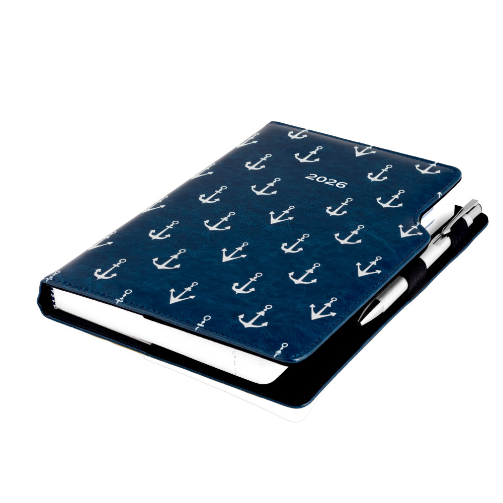 Diár DESIGN denný B6 2026 - modrá - námorník - kotvy