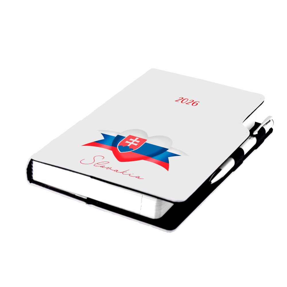 Diár DESIGN denný B6 2026 poľský - biela - Slovensko - vlajka
