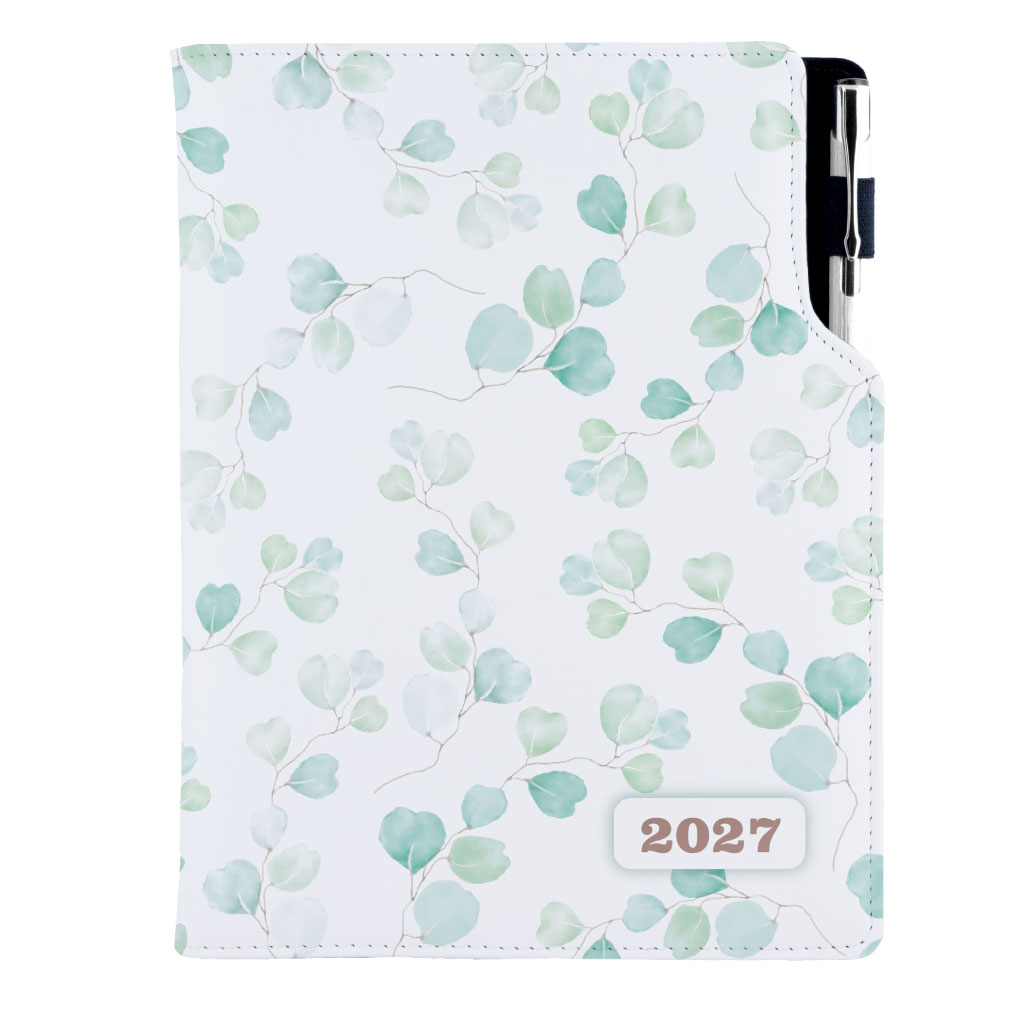 Diár obsahuje: okrúhle odtrhávcie rožky, bielu záložku a pero
