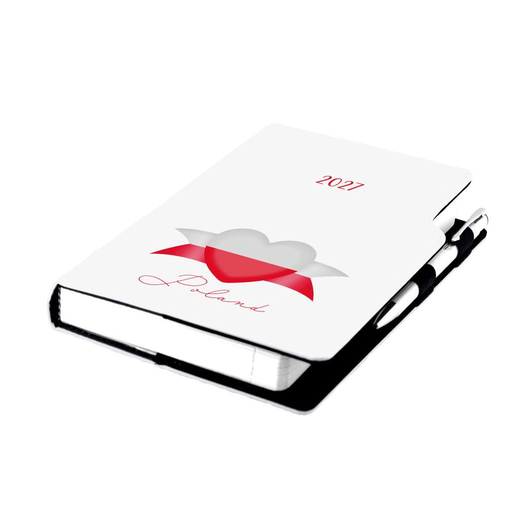 Diár DESIGN denný B6 2027 - biela - Poľsko - vlajka