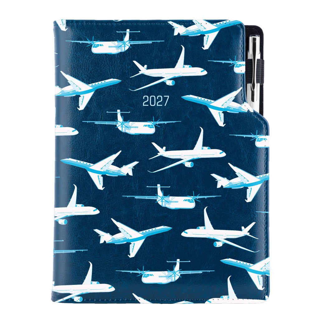 Diár DESIGN denný B6 2027 polský - modrá - lietadlá