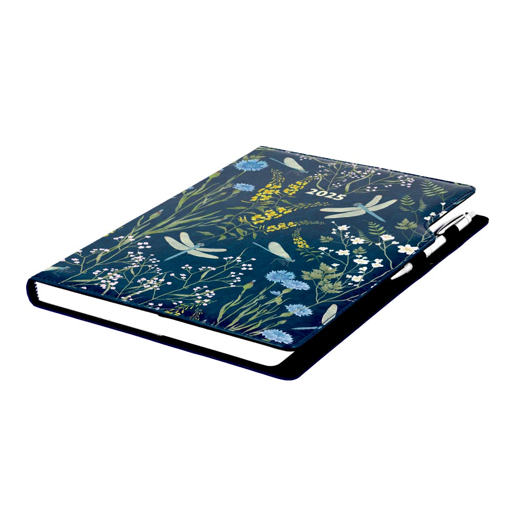 Diár DESIGN týždenný A4 2025 - modrá - vážky