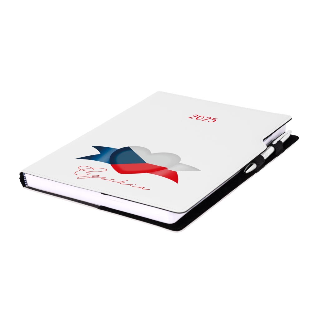 Diár DESIGN týždenný A4 2025 poľský - biela - Česko - vlajka
