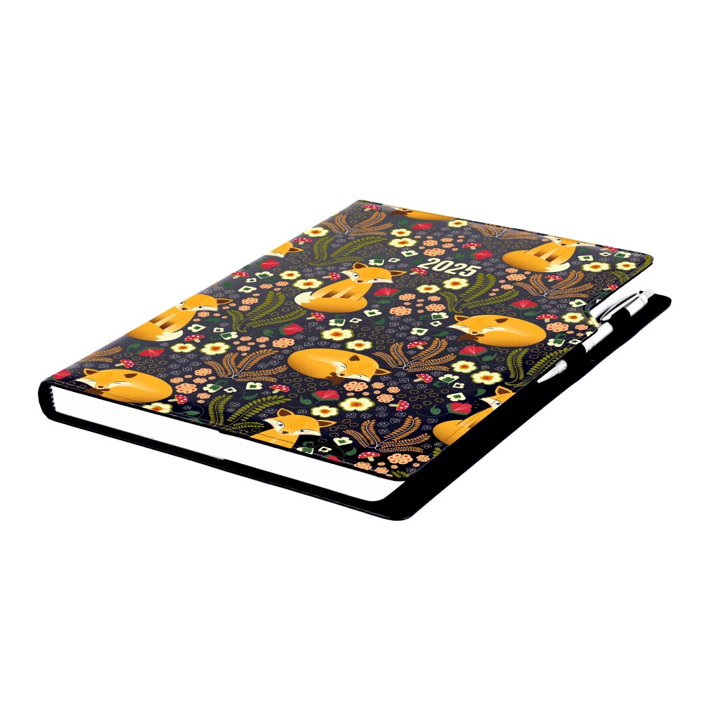 Diár DESIGN týždenný A4 2025 poľský - čierna - Líška