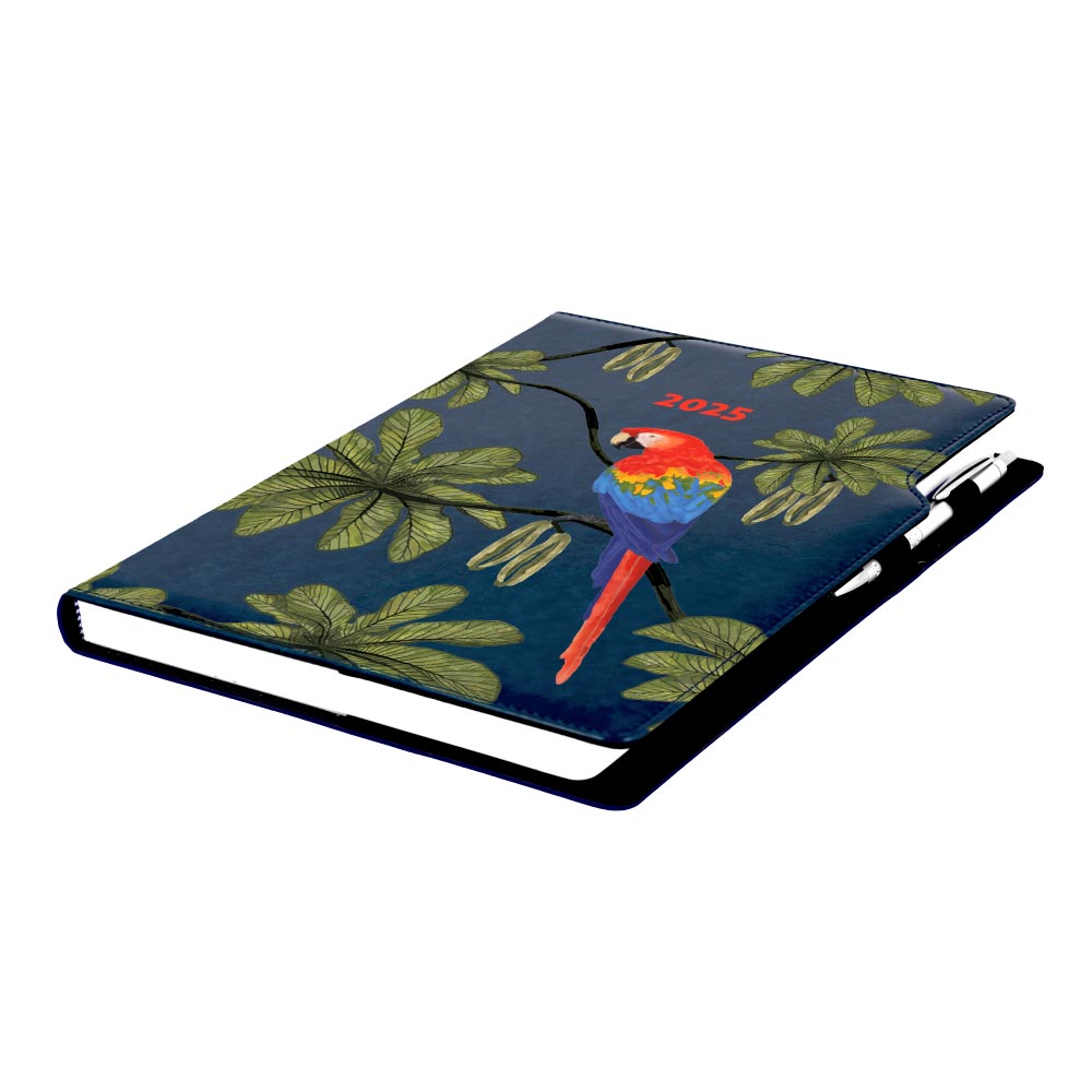 Diár DESIGN týždenný A4 2025 poľský - modrá - papagáj