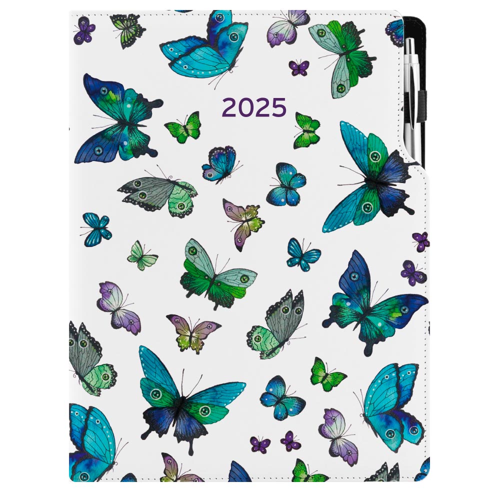 Diár DESIGN týždenný A4 2025 poľský - Motýle modré