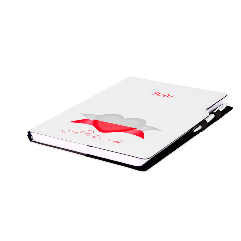 Diár DESIGN týždenný A4 2026 - biela - Poľsko - vlajka