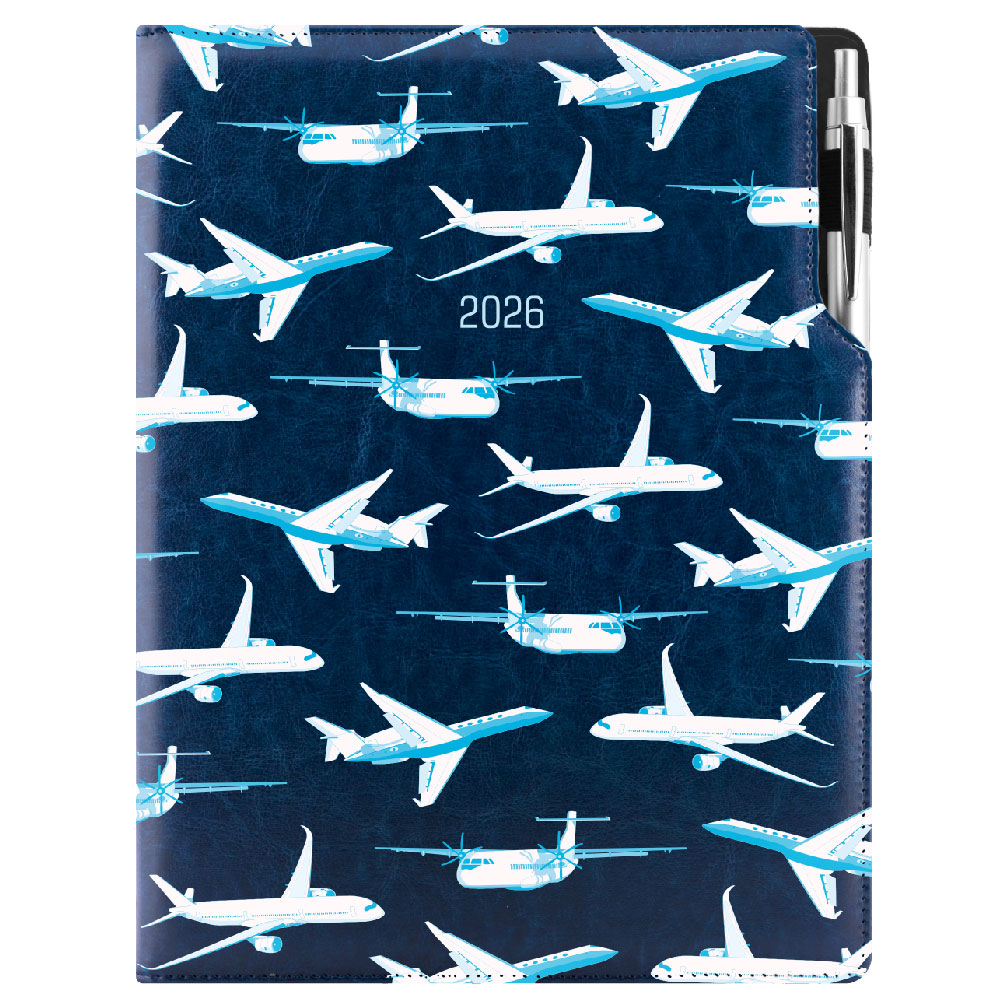 Diár DESIGN týždenný A4 2026 český - modrá - lietadlá