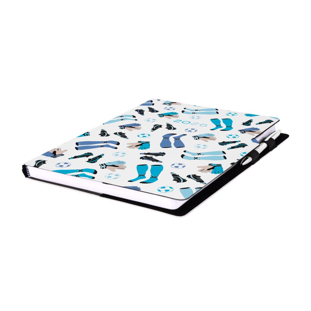 Diár obsahuje: okrúhle odtrhávcie rožky, bielu záložku a pero