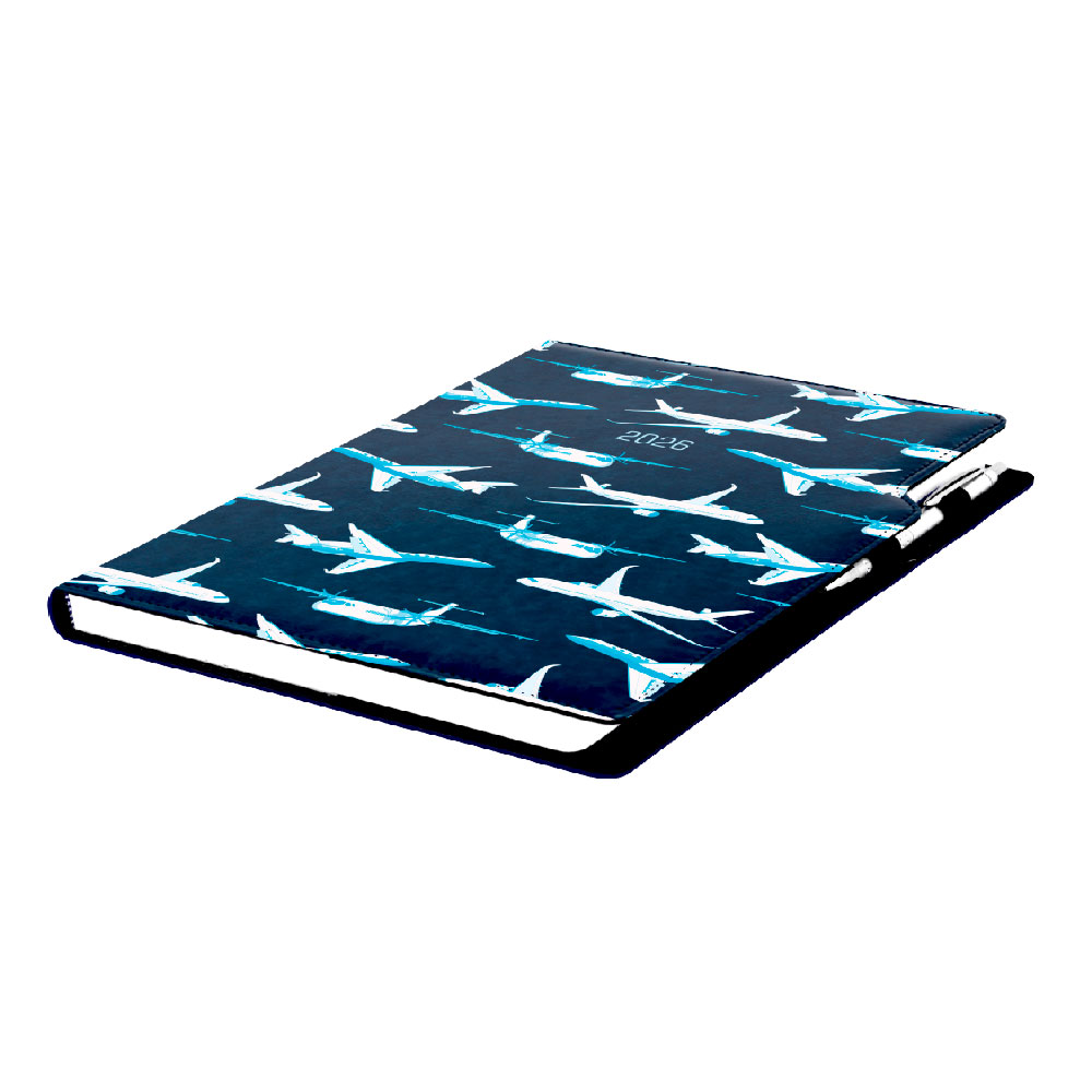 Diár DESIGN týždenný A4 2026 polský - modrá - lietadlá