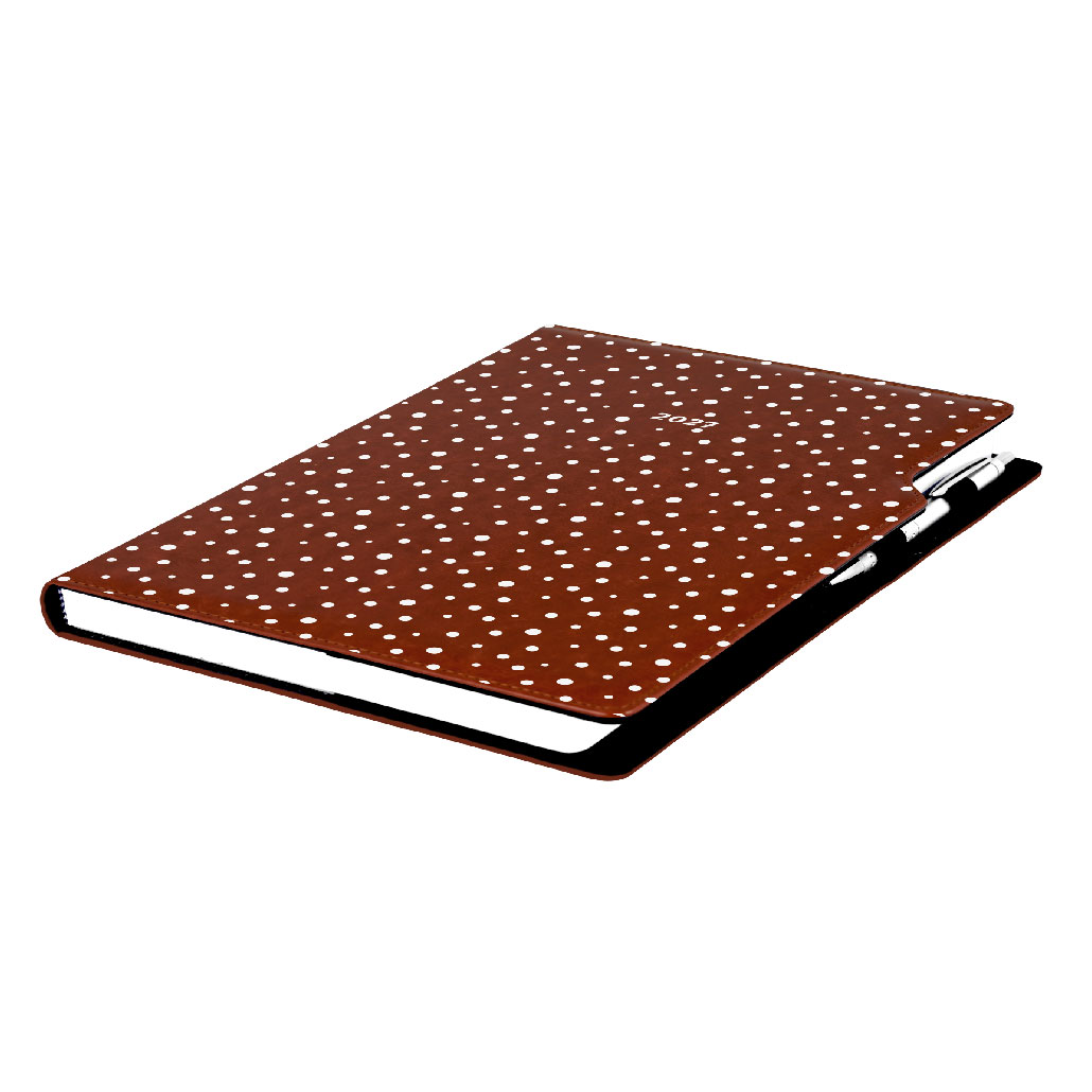 Diár DESIGN týždenný A4 2027 - hnedá - Bodky