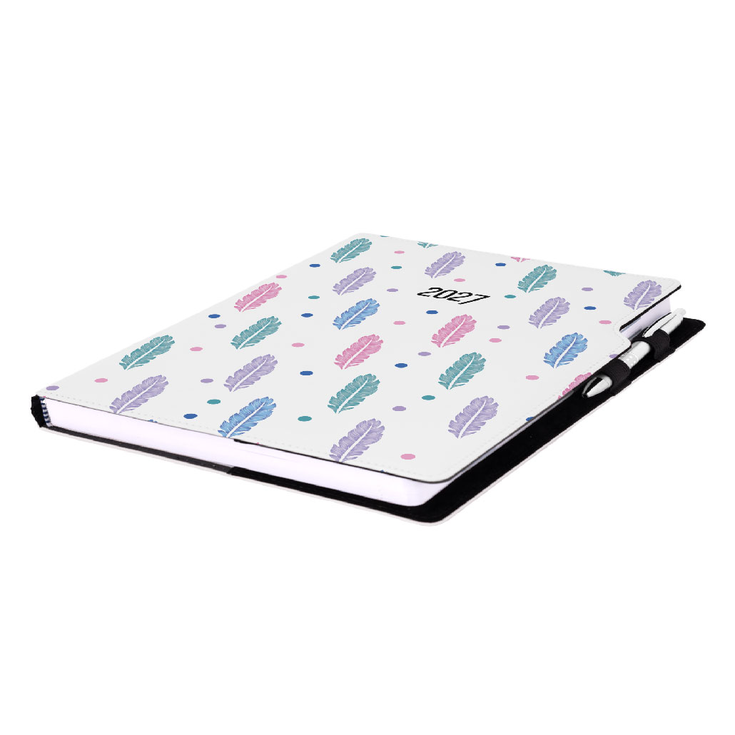 Diár obsahuje: okrúhle odtrhávcie rožky, bielu záložku a pero