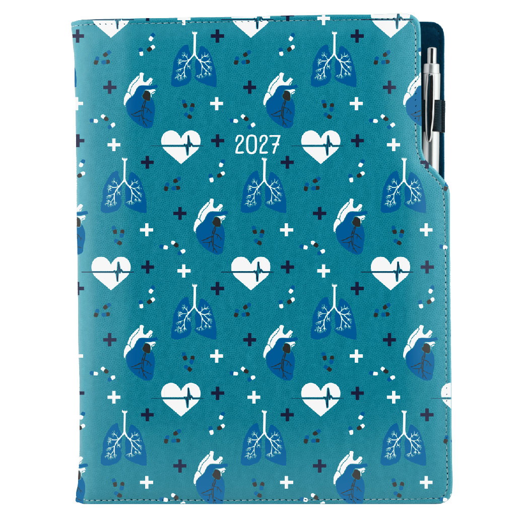 Diár DESIGN týždenný A4 2027 polský - tyrkysová- Doktor - srdce