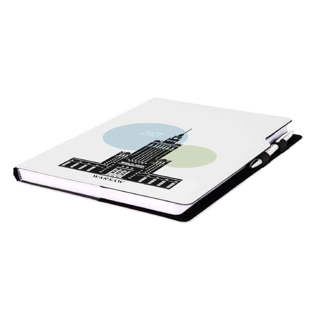 Diár obsahuje: okrúhle odtrhávcie rožky, bielu záložku a pero