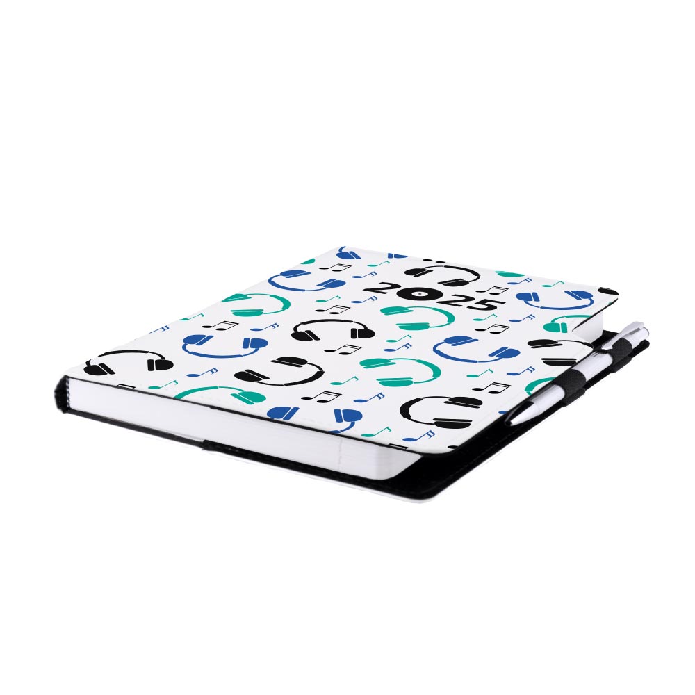 Diár obsahuje: okrúhle odtrhávacie rožky, bielu záložku a pero