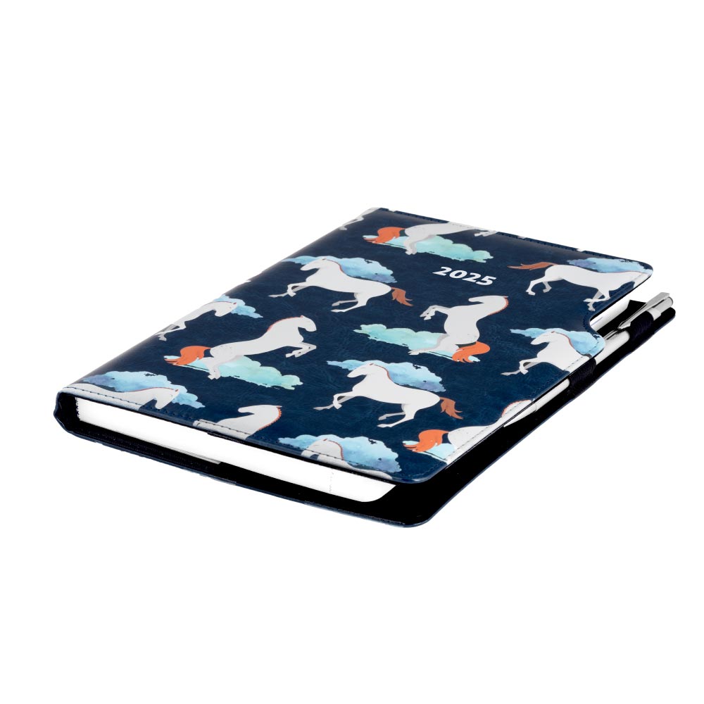 Diár DESIGN týždenný A5 2025 slovenský - modrá - kone