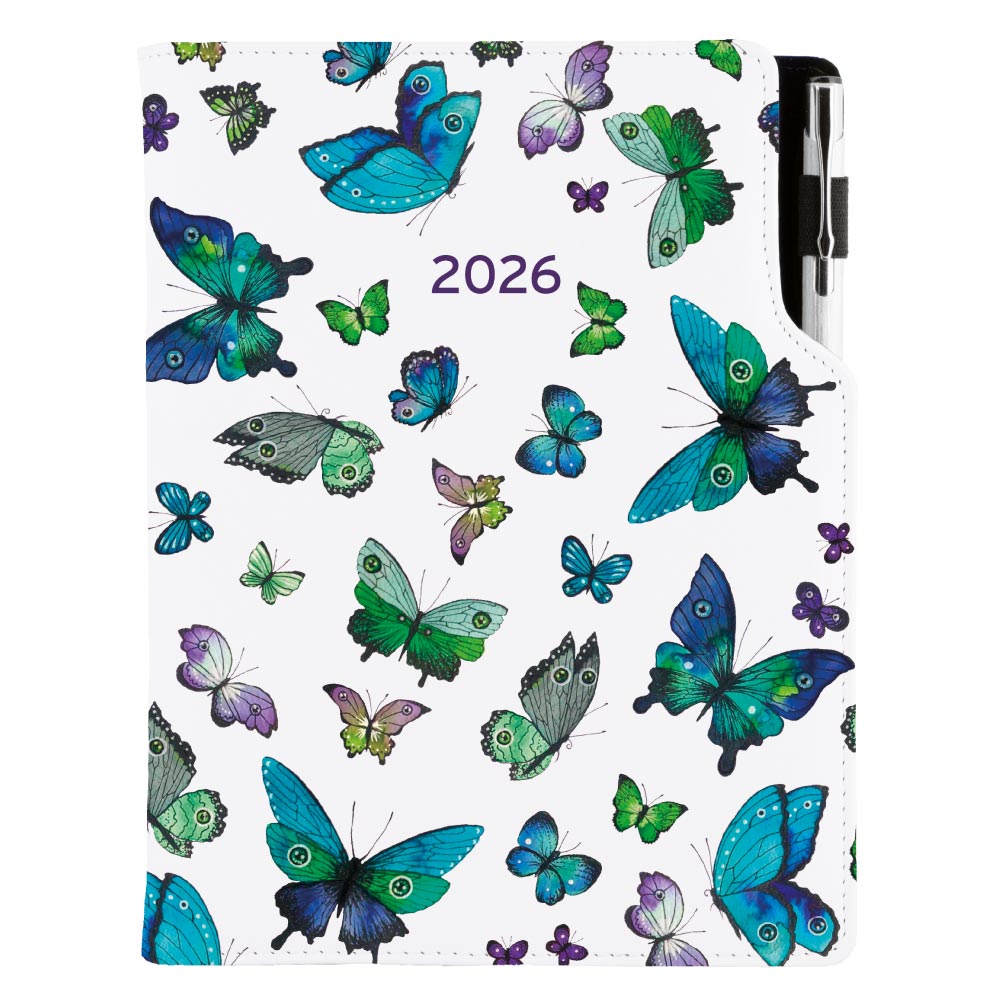 Diár DESIGN týždenný A5 2026 český - Motýle modré