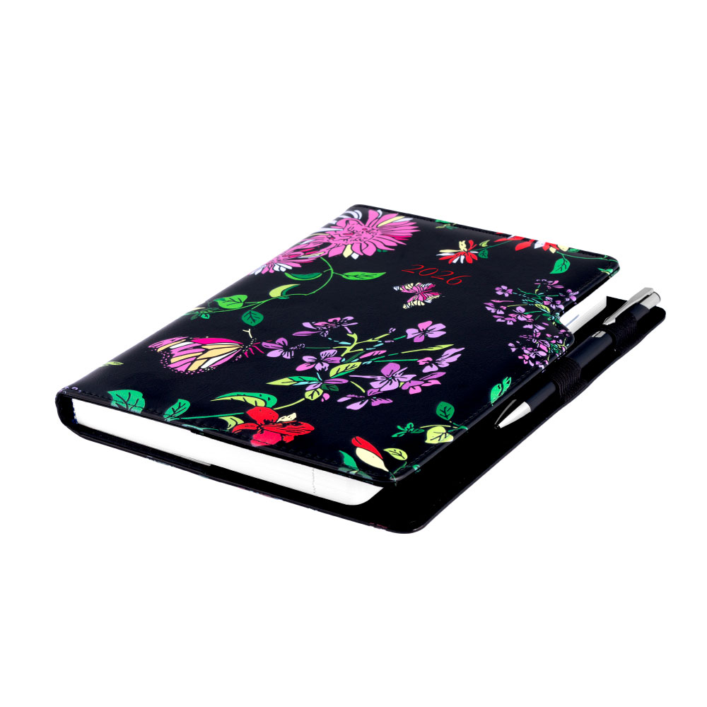 Diár DESIGN týždenný A5 2026 slovenský - čierna - Kvety