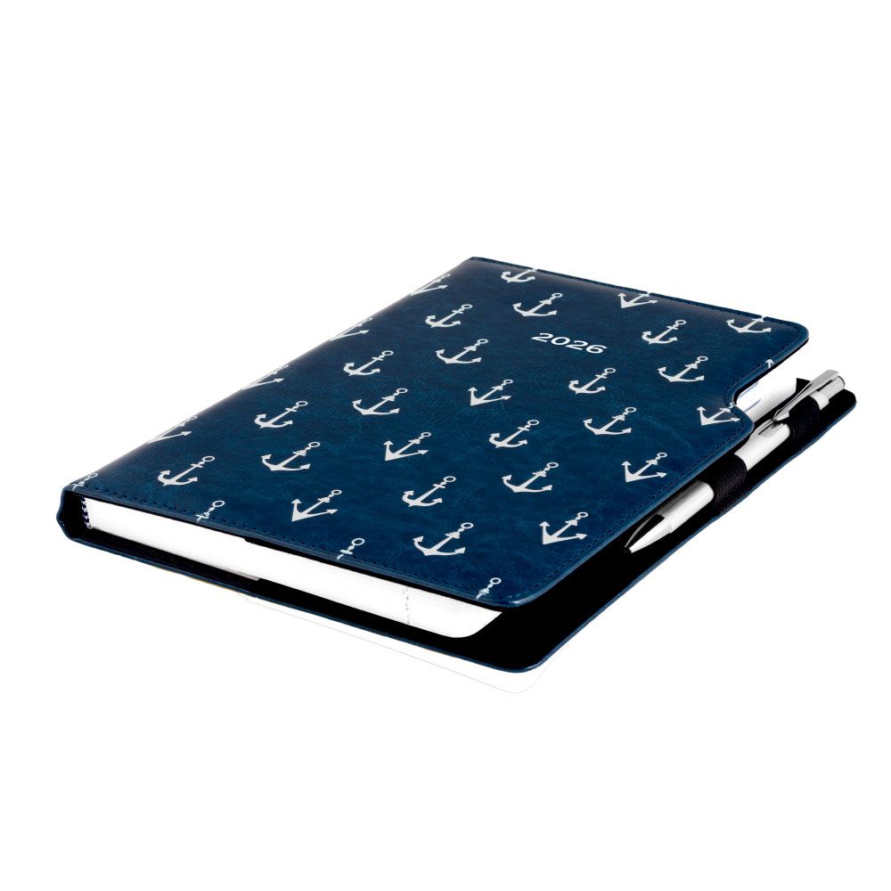 Diár DESIGN týždenný A5 2026 slovenský - modrá - Námorník - kotvy