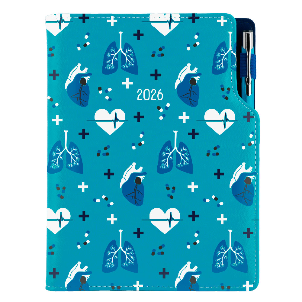 Diár DESIGN týždenný A5 2026 slovenský - tyrkysová- Doktor - srdce