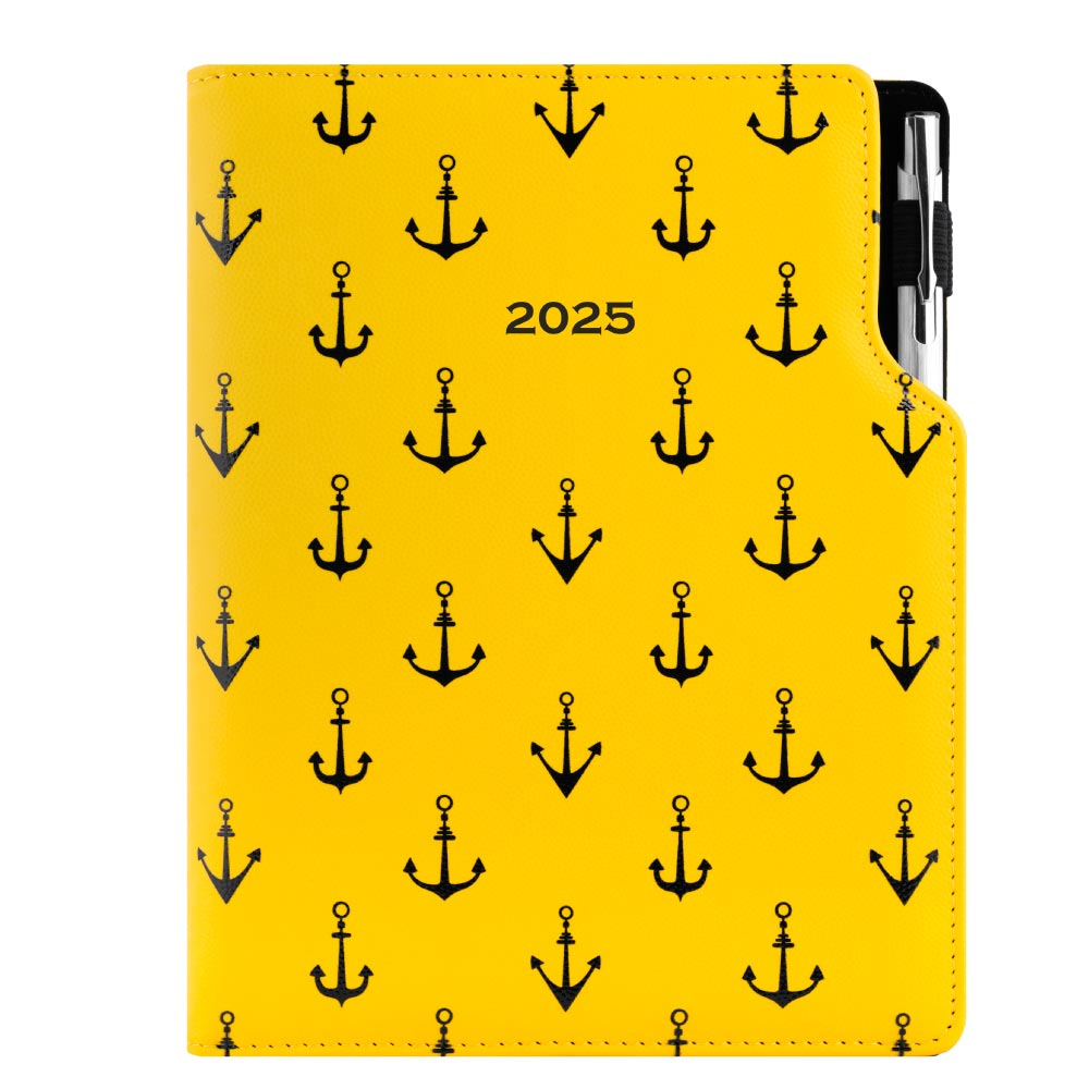 Diár DESIGN týždenný B5 2025 poľský - žltá - námorník - kotvy