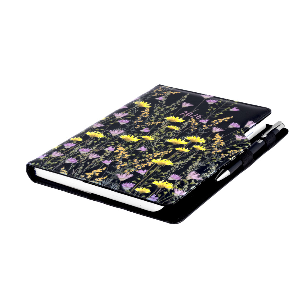 Diár DESIGN týždenný B5 2026 - čierna - lúka