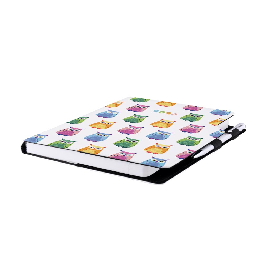 Diár obsahuje: okrúhle odtrhávcie rožky, bielu záložku a pero