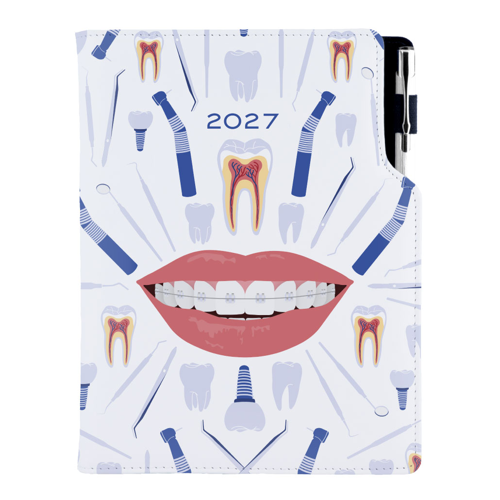 Diár DESIGN týždenný B5 2027 český - biela - zubár
