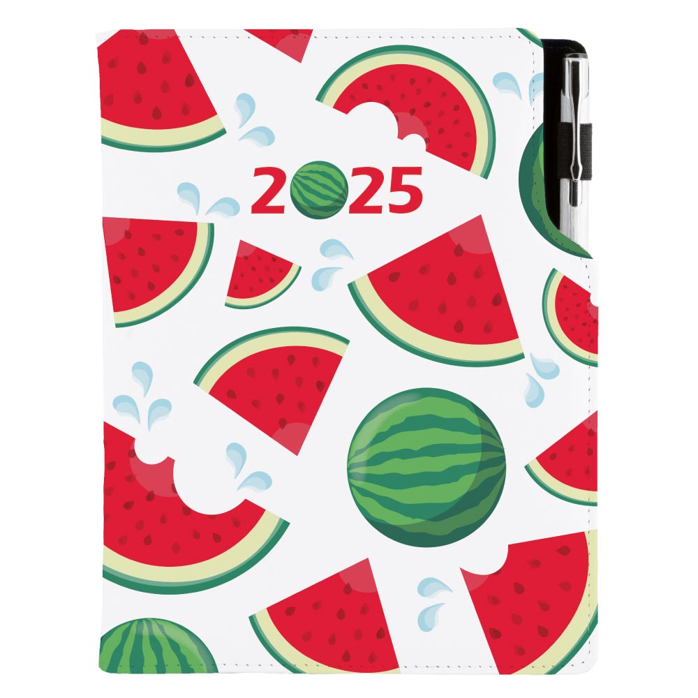 Diár obsahuje: okrúhle odtrhávcie rožky, bielu záložku a pero