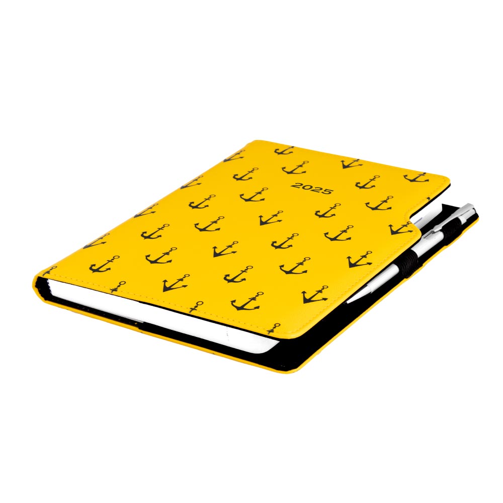 Diár DESIGN týždenný B6 2025 - žltá - námorník - kotvy