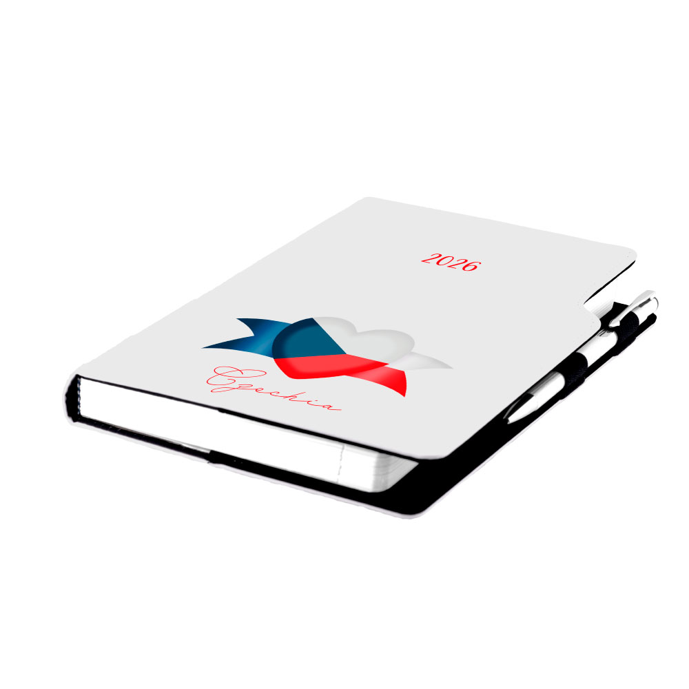 Diár DESIGN týždenný B6 2026 - biela - Česko - vlajka
