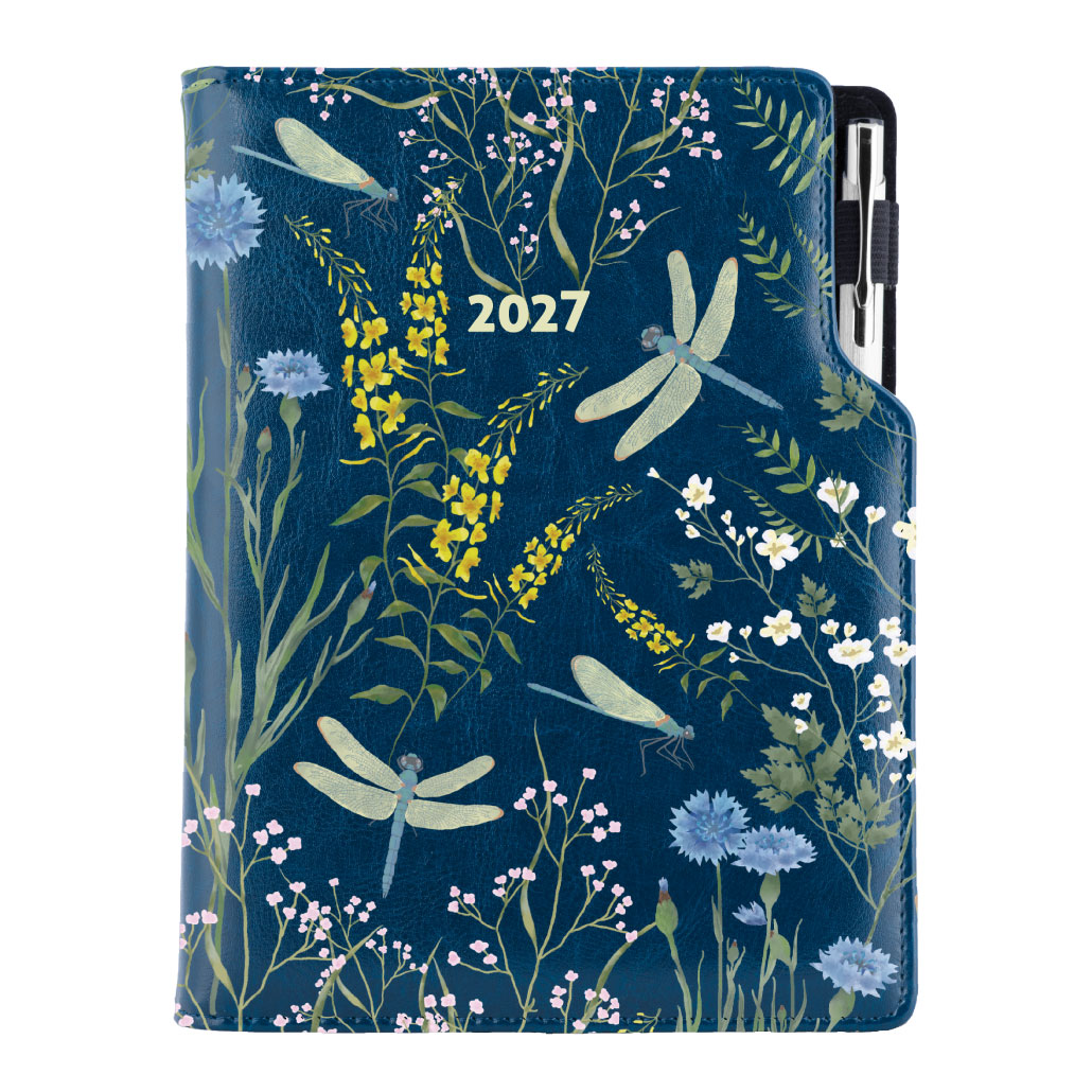 Diár DESIGN týždenný B6 2027 - modrá - Vážky
