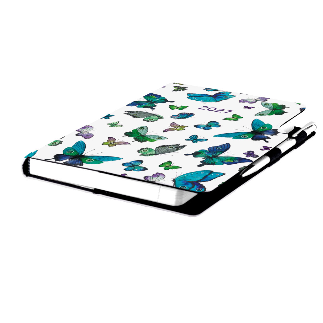 Diár DESIGN týždenný B6 2027 - Motýle modré