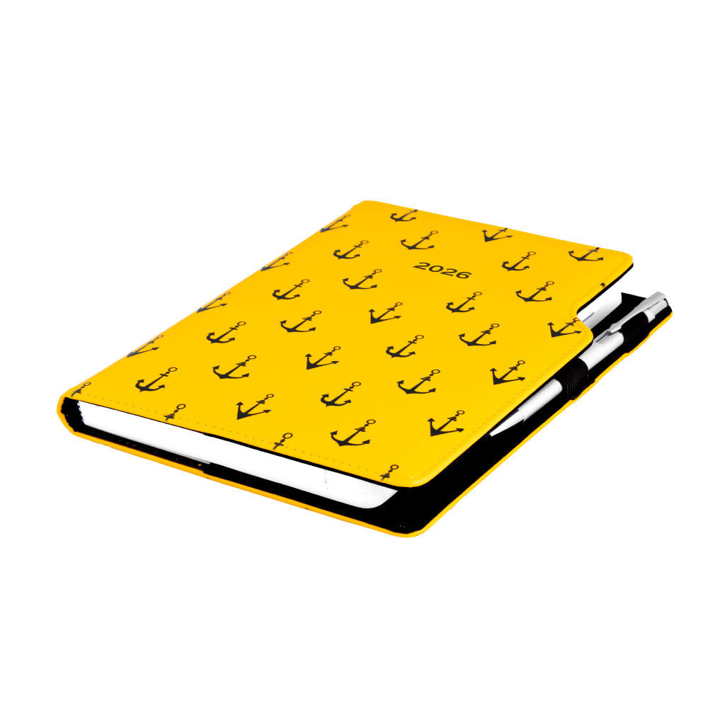 Diár DESIGN týždenný špeciál A5 2026 - žltá - Námorník - kotvy