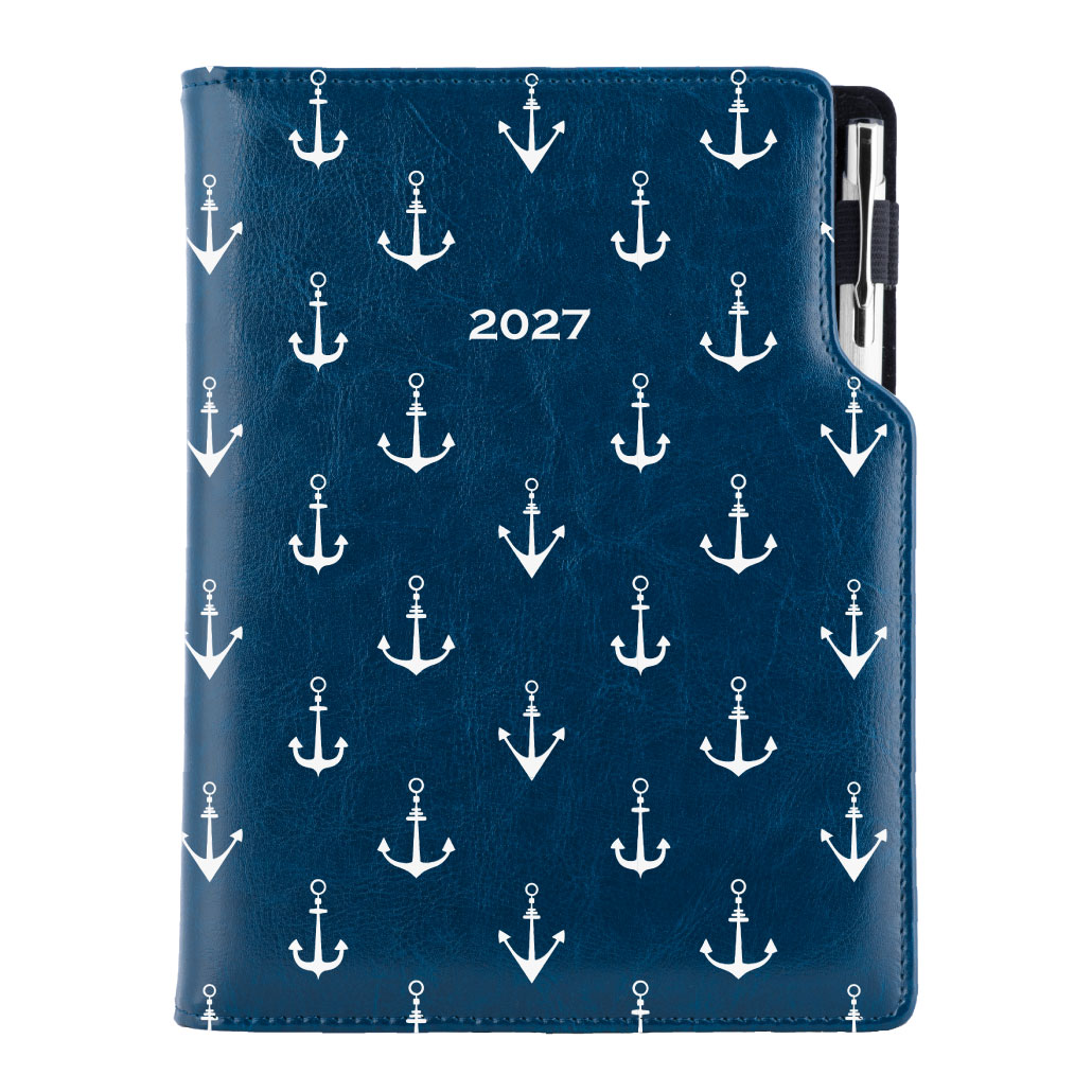 Diár DESIGN týždenný špeciál A5 2027 - modrá - Námorník - kotvy