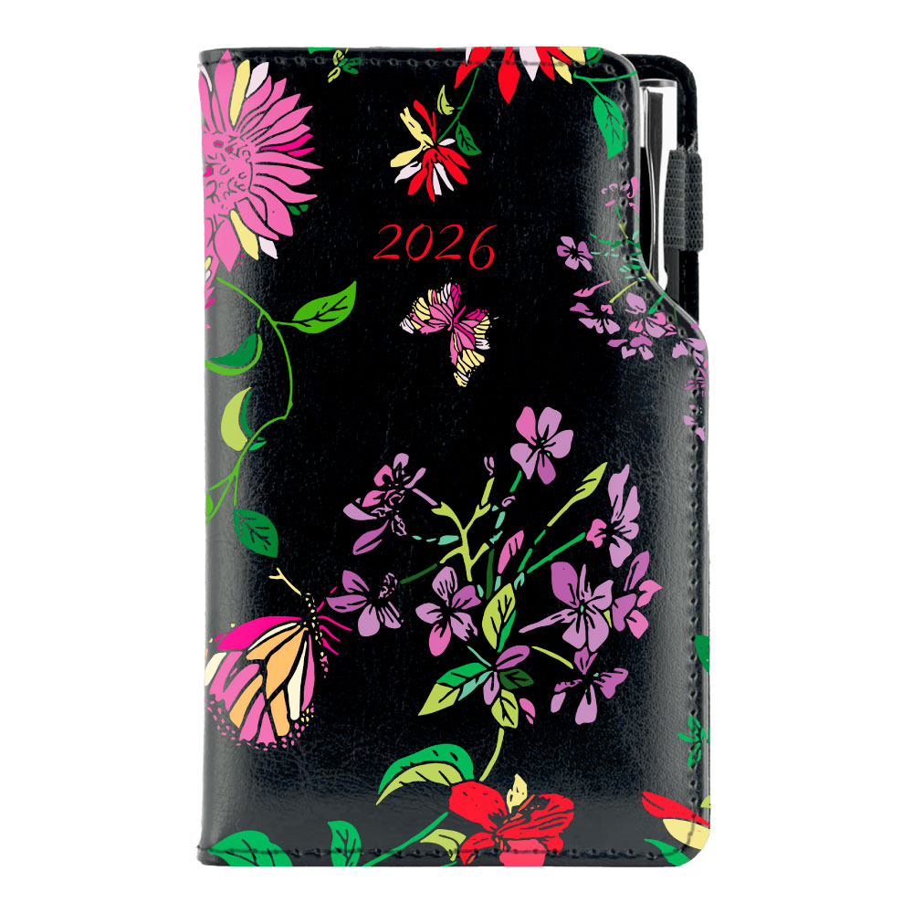 Diár DESIGN týždenný vreckový 2026 český - čierna - kvety